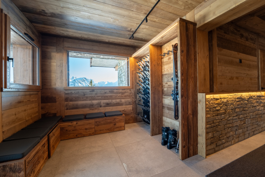 All’ingresso si trova uno Ski Room con asciuga scarponi, deposito sci e spogliatoio completo.