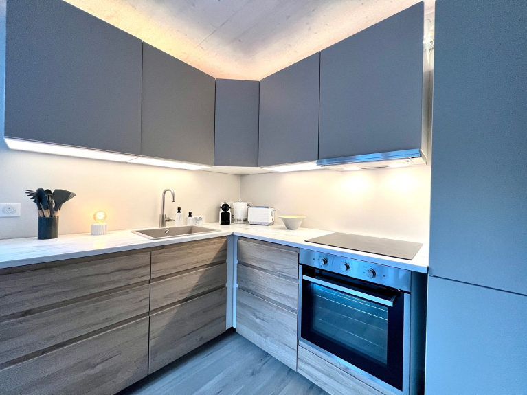 -Grocery, pane e dolci, nonché preparazione di raclette e fonduta, 3 ristoranti e una serie di negozi e artigiani a 1 minuto a piedi dallo chalet.