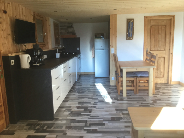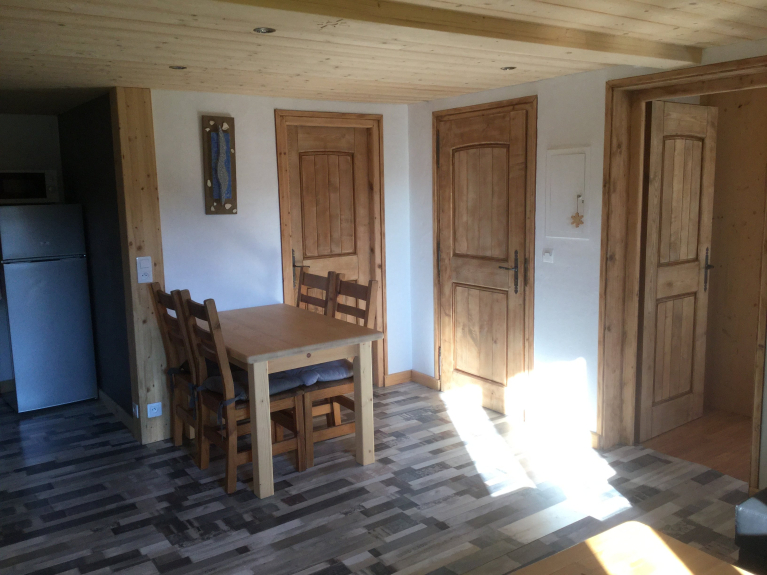 Grazioso appartamento arredato al piano giardino di uno chalet, situato nel cuore del villaggio di Crest-Voland, a 200 m dall'inizio delle piste, dal centro lezioni di sci e dal centro del paese. Di fronte alla lavanderia, parcheggio privato davanti all'appartamento, accesso diretto al giardino. L'appartamento di 35 m2 è composto da una camera con letto matrimoniale e da un divano letto nel soggiorno. Molto confortevole, pratico e recentemente ristrutturato, ideale per le famiglie.