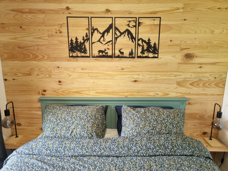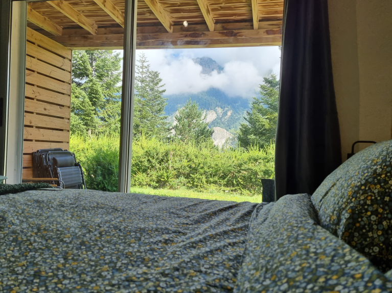 Lo chalet è distribuito su due piani. Al piano terra ci sono due camere da letto e un bagno. La camera matrimoniale dispone di un comodo letto doppio e spazio per una culla. La seconda camera è dotata di un letto a castello robusto, adatto sia per bambini che per adulti. Il bagno comprende una doccia, un WC e un lavandino con specchio.