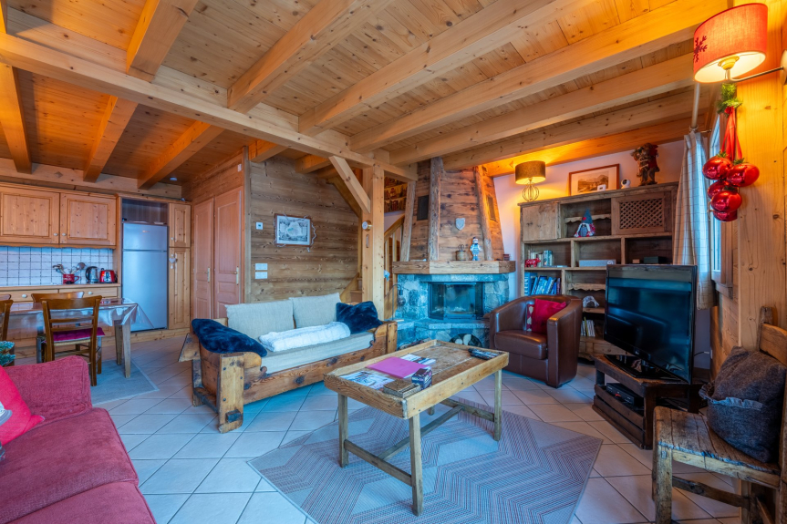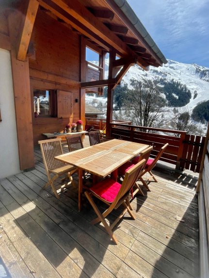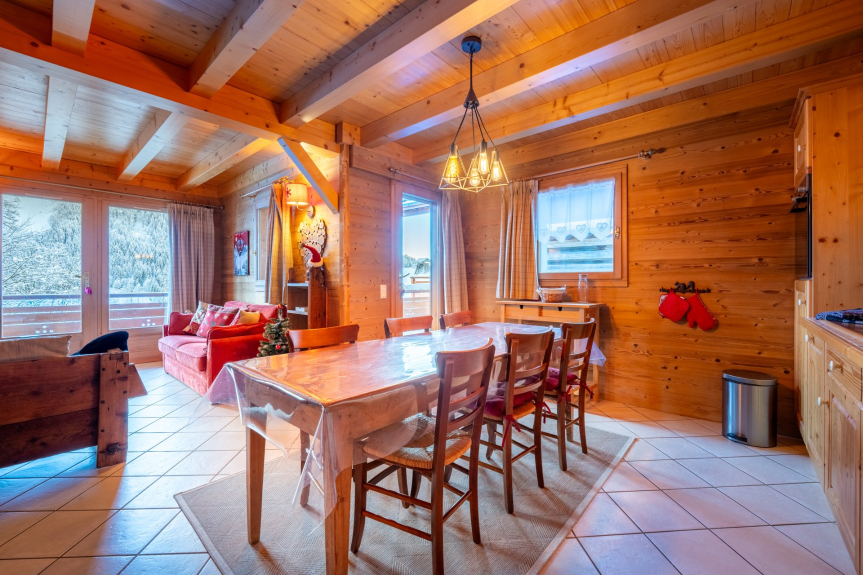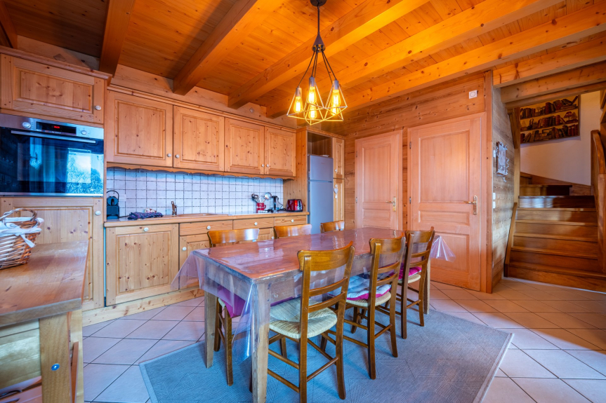 Chalet savoiardo bifamiliare 3***. 5 locali - 3 camere da letto - 8 posti letto, 2 bagni, 1 grande terrazza esposta a sud, sala da pranzo, salone, lavanderia, cantina, garage...