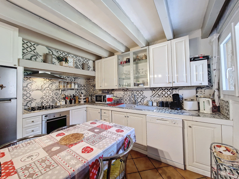 ATTREZZATURE: Frigorifero-congelatore, TV a schermo piatto, camino, lavastoviglie, lavatrice, macchina da caffè Senseo, forno, bollitore, microonde, tostapane, piano cottura a gas con 2 fuochi e 2 fuochi elettrici, 1 aspirapolvere Dyson, 1 aspirapolvere Bosch, 1 asciugacapelli, 1 friggitrice, ferro e asse da stiro, stendibiancheria, barbecue in pietra, mobili da giardino (tavolo + sedie + ombrellone + sdraio).