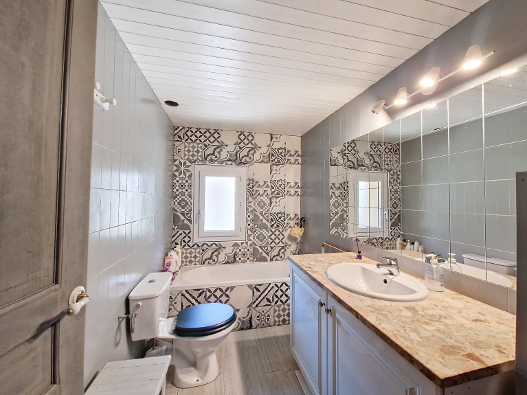 3 camere da letto, 1 mezzanino, cucina attrezzata, soggiorno, sala da pranzo, bagno con doccia e WC e 1 bagno con vasca e WC. Terrazza e parcheggio.
