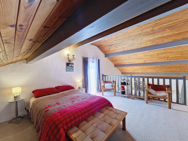 Zona notte in MEZZANINO: 1 letto matrimoniale 140x190 con piumone