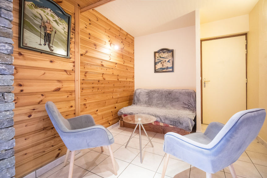 Zona soggiorno con divano letto (1 letto matrimoniale in 160) e 2 poltrone