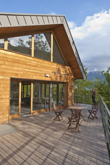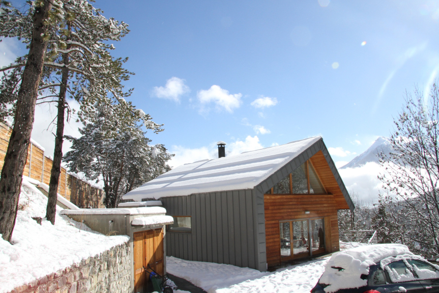 Questo chalet moderno ed ecologico a energia positiva (produce più energia di quanta ne consuma!) di oltre 220 m2 situato a Briançon, sulle alture di Fortville, sarà l'alloggio ideale per una vacanza in famiglia.
