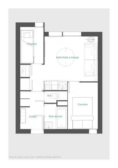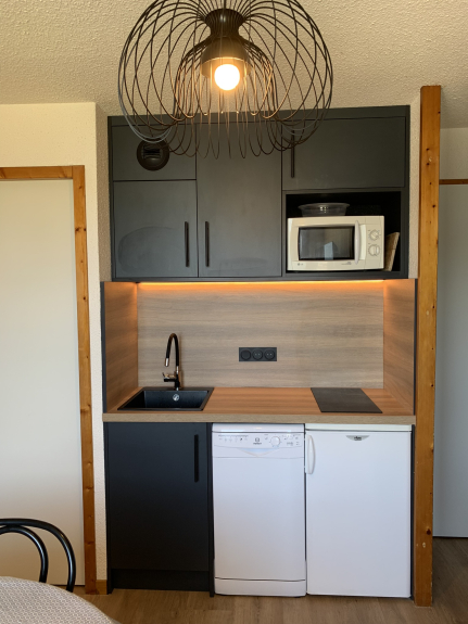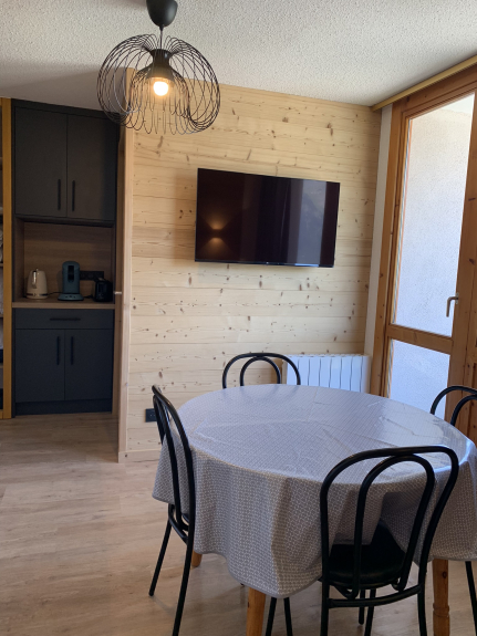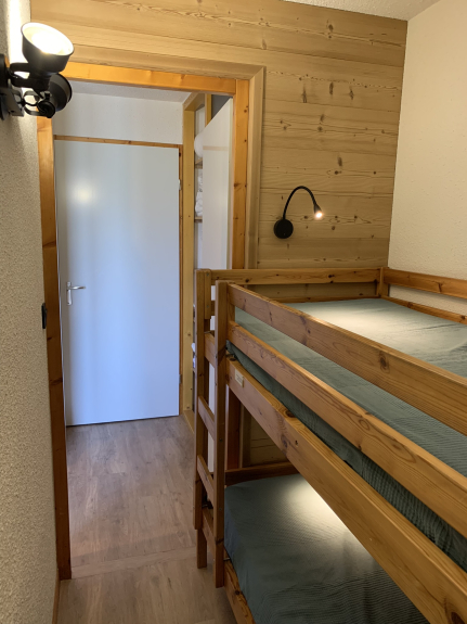 Bellissimo bilocale con cabina, 26 m², 4 posti letto, in un residence ai piedi delle piste. Si trova al 2° piano, senza ascensore, con parcheggio pubblico gratuito nelle vicinanze. Ideale per vacanze in famiglia.
