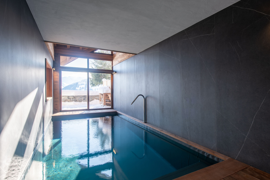 Al piano terra, l'ingresso dello Chalet Lorna offre un bellissimo spazio abitativo con una cucina completamente attrezzata che si apre sul salotto e sulla sala da pranzo, il luogo perfetto per le riunioni di famiglia. C'è anche una camera da letto matrimoniale con bagno privato con doccia. Per rilassarsi dopo una giornata in montagna, fate un tuffo nella piscina privata riscaldata, che si apre su una graziosa terrazza in legno. Il relax è garantito per grandi e piccini!