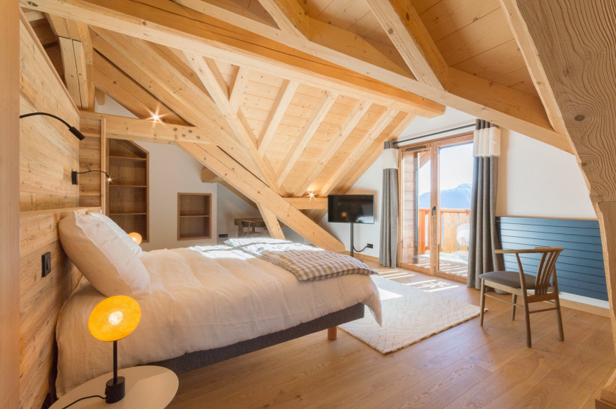 Al piano superiore, lo Chalet Lorna dispone di una suite padronale con letto matrimoniale e bagno. Un bagno con doccia, una toilette separata e uno spogliatoio completano questo livello.