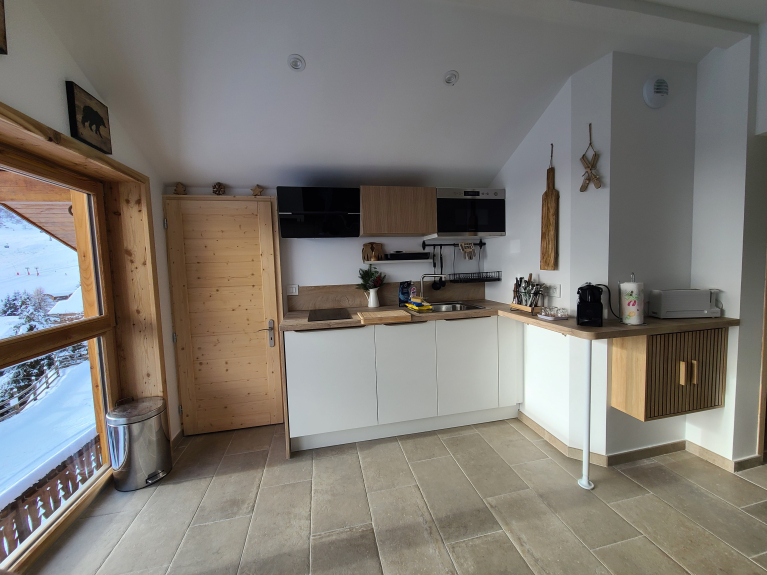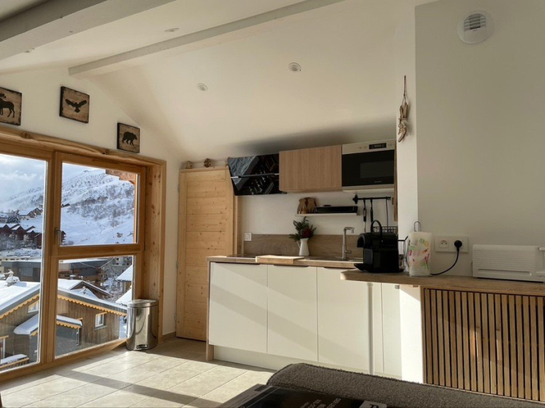 Situato in posizione ideale con vista sul centro della località, questo accogliente appartamento mansardato di circa 50 m² (20 m² loi carrez) offre una splendida vista sulle Aiguilles d'Arves.