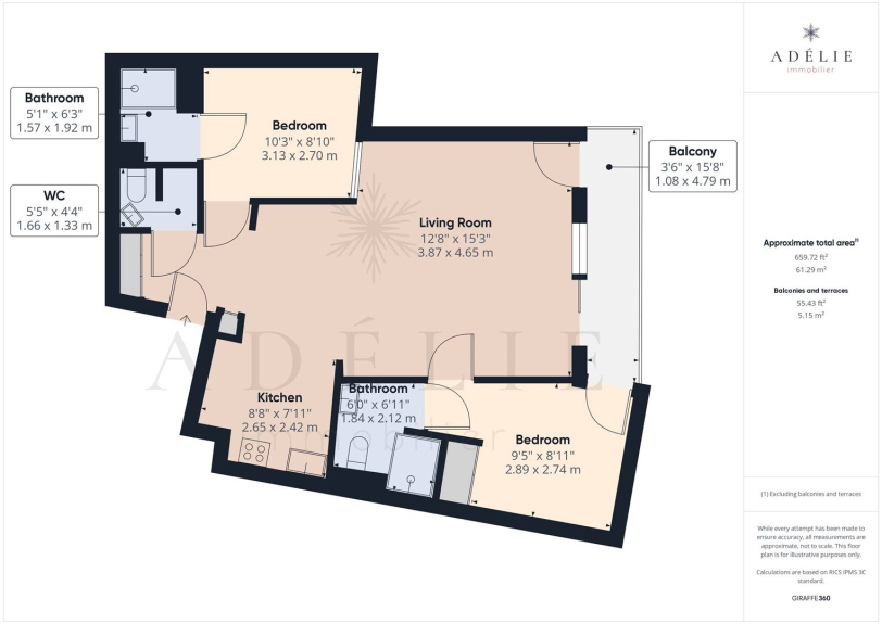 - 2 camere con letti matrimoniali (160cm x 200cm), 2 con bagno con doccia, 1 con WC