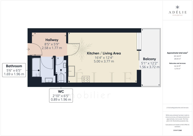 ALPA2: Monolocale 2/4 persone di 27 m² completamente ristrutturato situato al 1° piano del residence, a -2 dall'ingresso con ascensore.