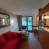 Area salotto con TV a schermo piatto, zona pranzo e cucina a vista completamente attrezzata con lavastoviglie, forno a microonde, piano cottura a induzione, frigorifero con congelatore, tostapane, bollitore e macchina da caffè NESPRESSO.