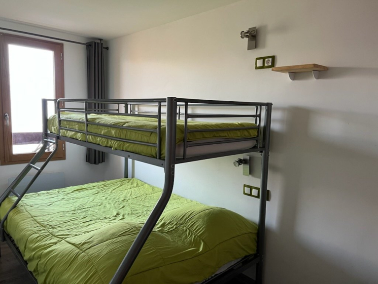 o Una camera con letto a soppalco per 2 persone (140x190) + 1 persona (90x190) e una culla.