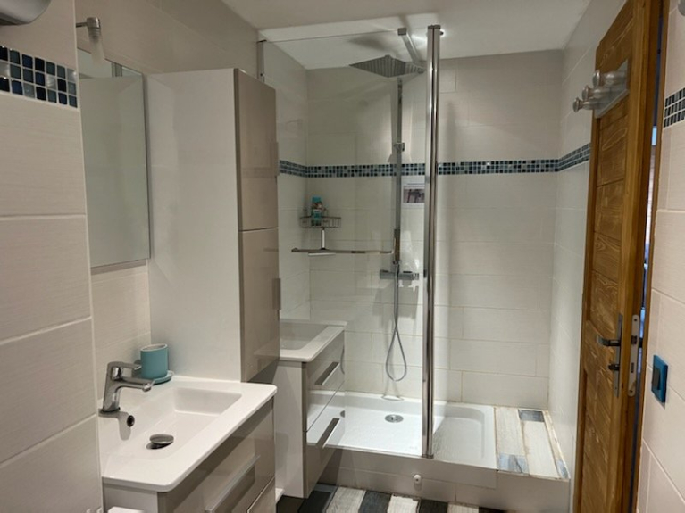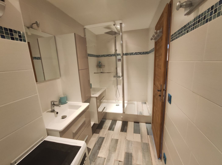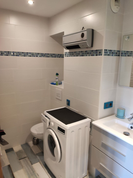 o Un bagno con doccia 120*80, 2 lavandini separati, un secondo WC e una lavatrice.
