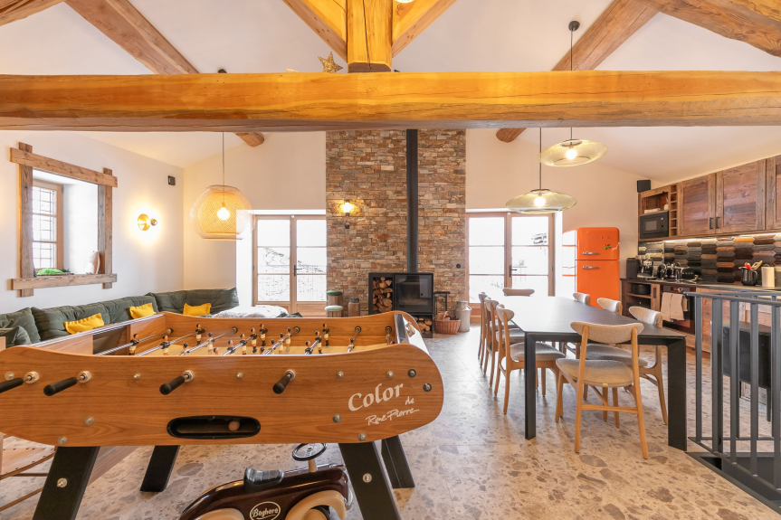 Calcio balilla e una console di giochi Nintendo Switch per indimenticabili momenti di gioco condiviso.