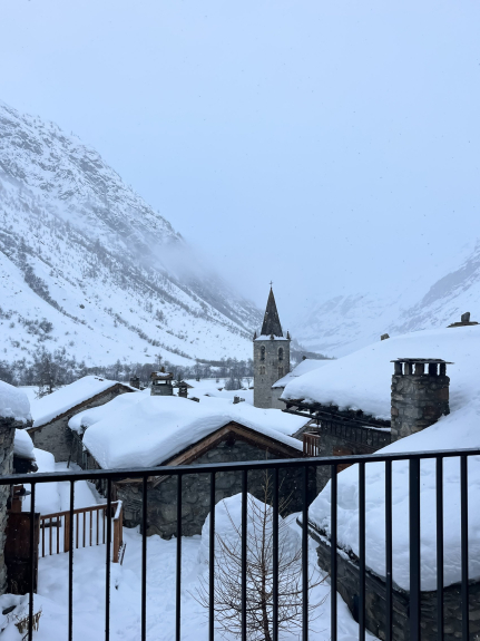 Chalet per 10 persone situato nell'antico villaggio di Bonneval-sur-Arc, pieno sole, vista sulla chiesa e sulla valle.