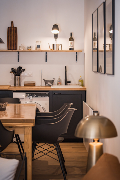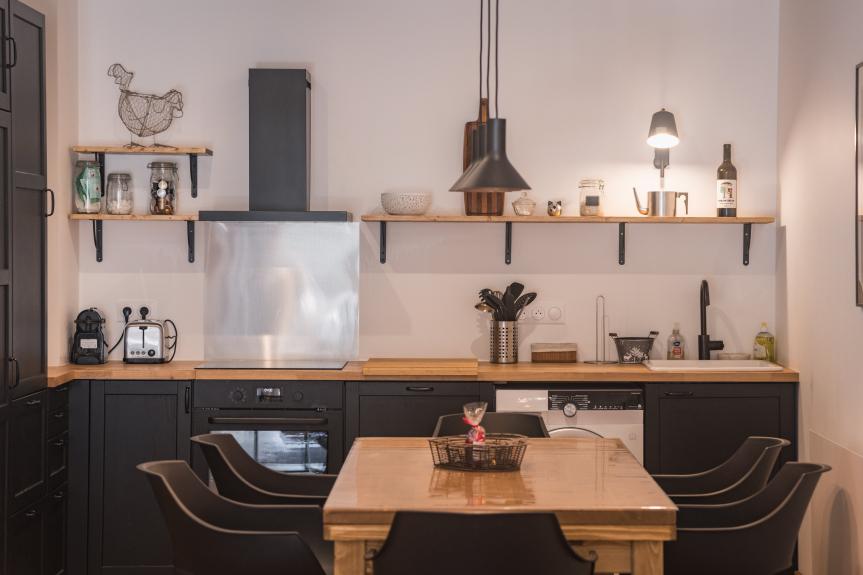 - Cucina: piano cottura a induzione, cappa aspirante, frigorifero-congelatore, forno, microonde, lavastoviglie, lavatrice con asciugatrice, macchina da caffè Nespresso e filtro, macchina per raclette e fonduta, e tutto il necessario per cucinare