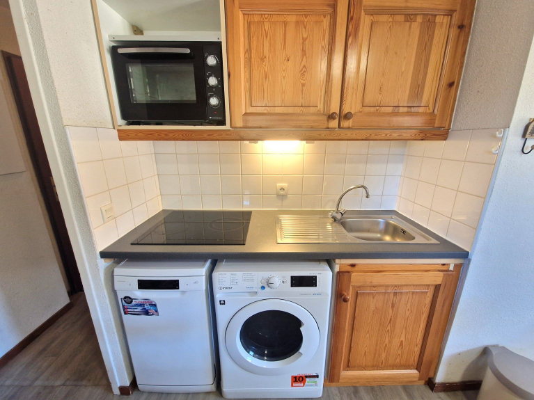 - Angolo cottura con 4 piastre elettriche, frigorifero, forno, lavastoviglie, microonde, lavatrice.