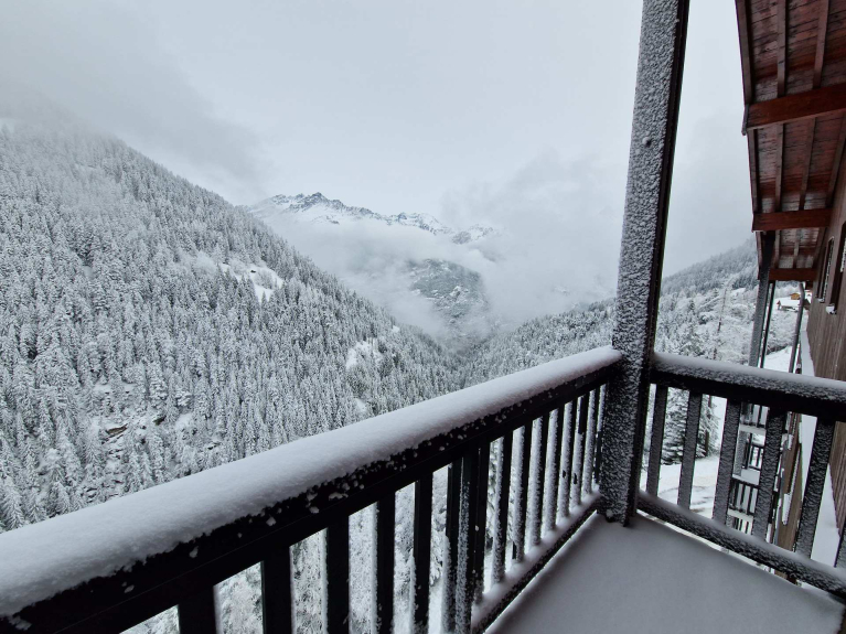 - Balcone con porte-finestre e splendida vista sul massiccio della Vanoise.