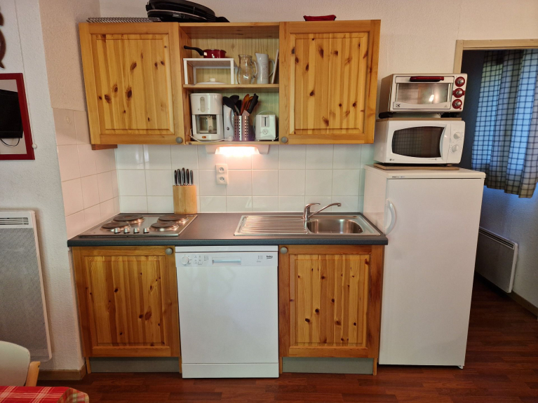 - Angolo cottura con 4 piastre elettriche, frigorifero, lavastoviglie, microonde.