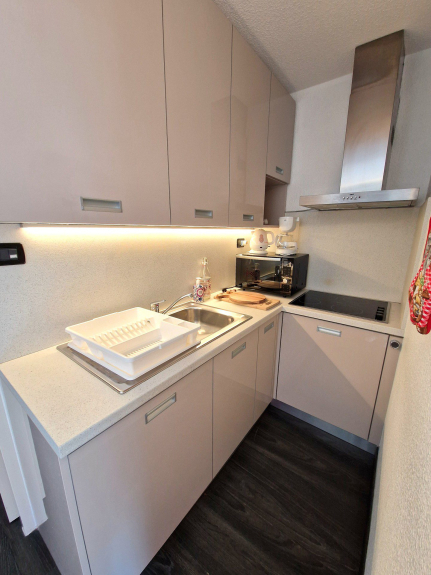 - Cucina con 4 piastre elettriche, frigorifero, microonde, lavastoviglie.
