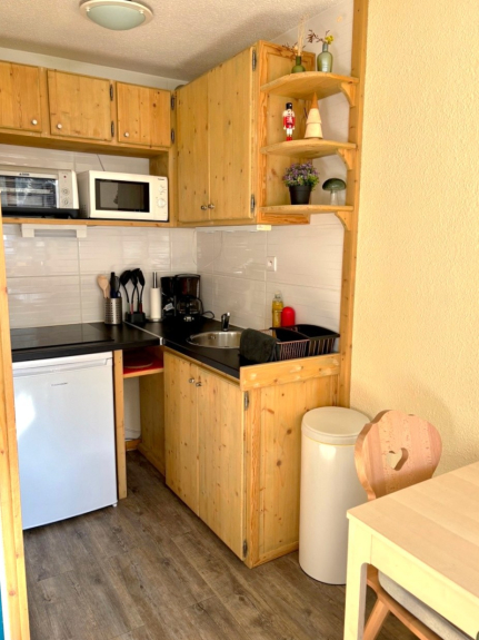 - Angolo cottura con 2 piastre in vetroceramica, frigorifero e forno.