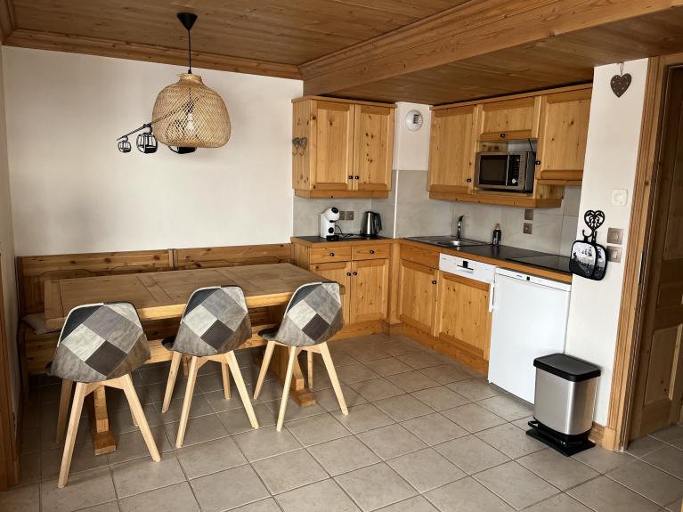 cucina completamente attrezzata: forno, frigorifero, lavastoviglie, macchina per raclette, ecc.