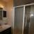 Bagno con doccia, lavabo e scaldasalviette. WC separato.