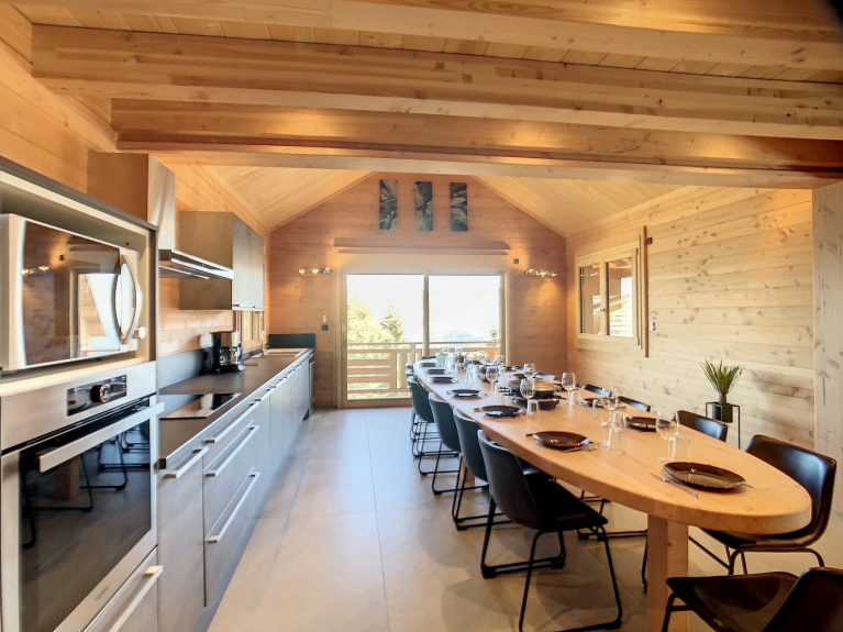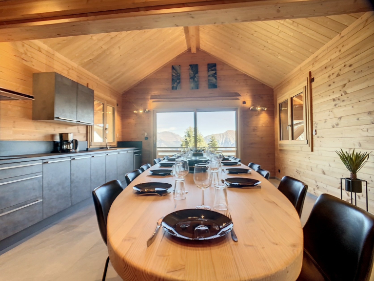 Uno chalet di 270 m² con 7 camere da letto e 7 bagni, che unisce modernità e comfort, vi aspetta per una piacevole vacanza con gli amici o la famiglia. Per il vostro benessere, potrete usufruire di un bagno norvegese e di una sauna sulla terrazza con vista sulle montagne. Un soggiorno rilassante in quota!