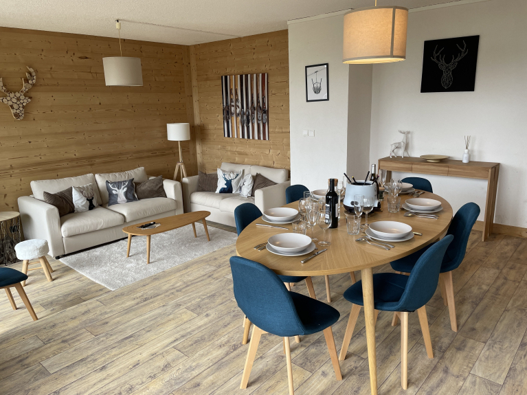 Appartamento spazioso e ben posizionato vicino alle piste, con 6 posti letto, situato proprio sotto la seggiovia Parchey a Plan Peisey.