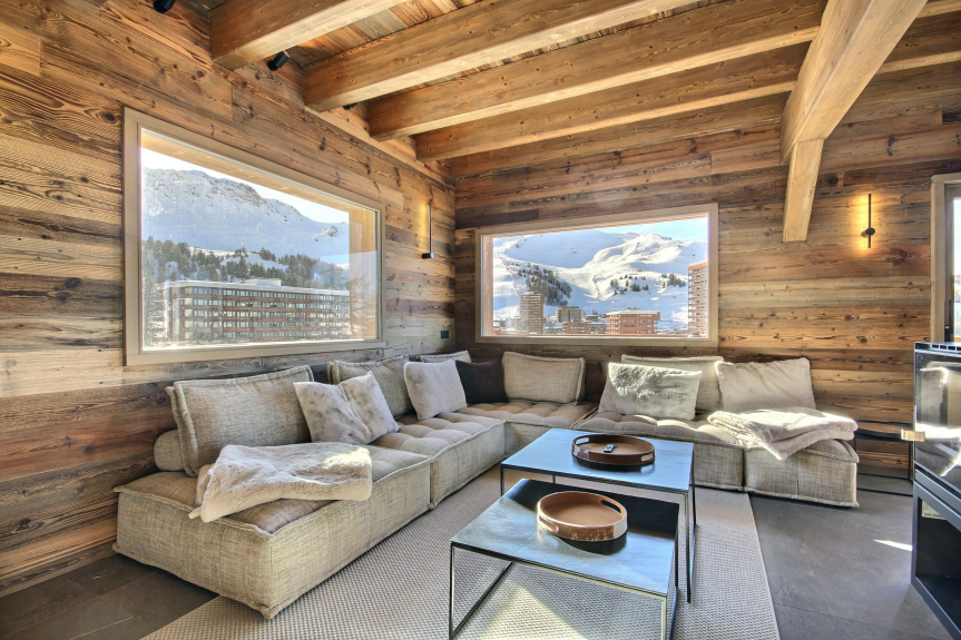 Zona giorno molto bella (circa 70 m²) che si apre su un ampio balcone e offre una vista superba sulla località grazie alle sue grandi finestre panoramiche. Si compone di: