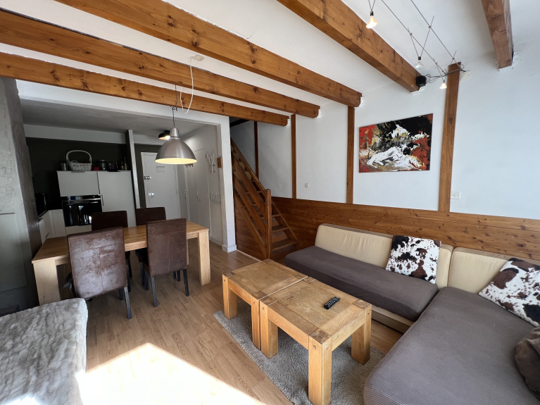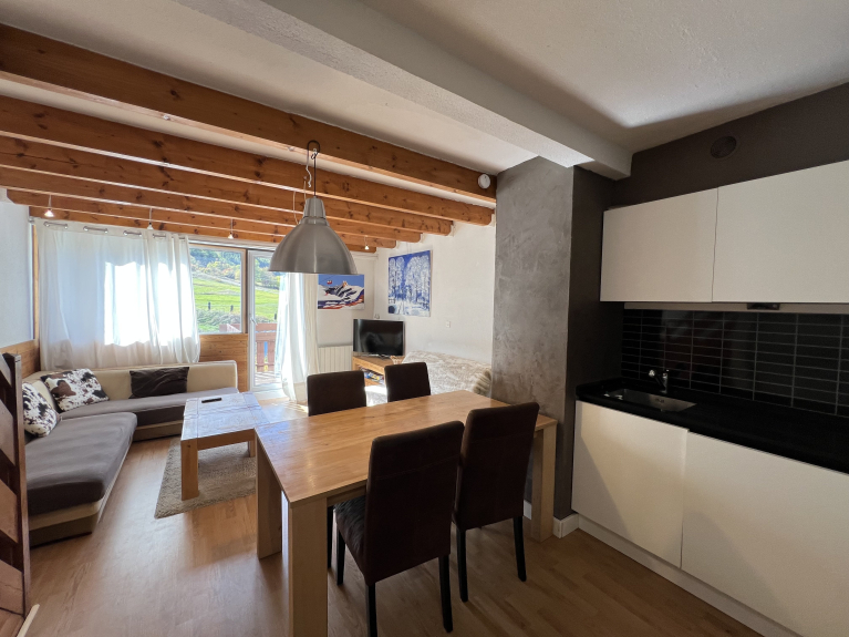 Al quarto piano, con vista ininterrotta sulle piste, trilocale duplex composto da:- angolo cottura completamente attrezzato