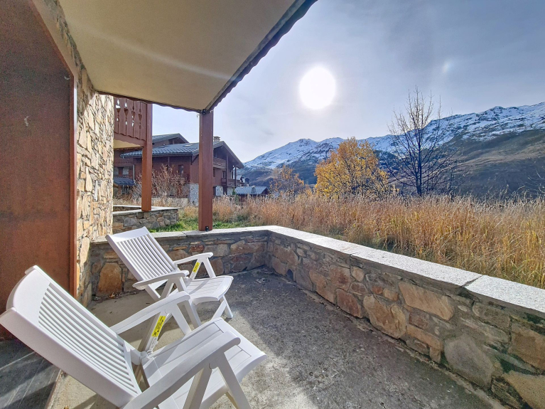 Luminoso monolocale di 22 m² per 2 persone. Si trova al piano terra del residence e dispone di una terrazza.