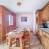 Cucina attrezzata con tre piastre in vetroceramica, cappa aspirante, frigorifero, microonde, macchina da caffè, tostapane, bollitore.