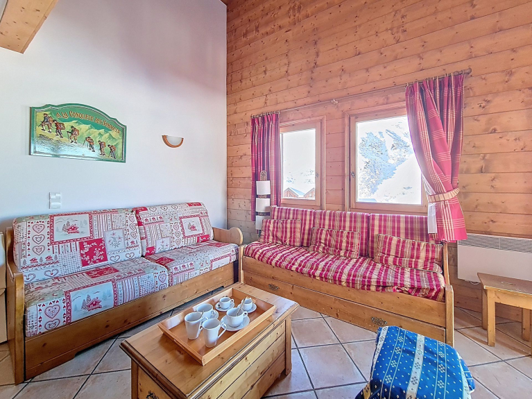 Questo residence, situato all'ingresso del resort, ha un'atmosfera tradizionale savoiarda. Venite a scoprire i suoi appartamenti funzionali, la zona relax con piscina, sauna, hammam, sala fitness, negozio di sci e servizio navetta gratuito per il centro del resort, a solo 1 km di distanza.