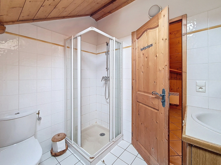 Bagno con doccia e WC.
