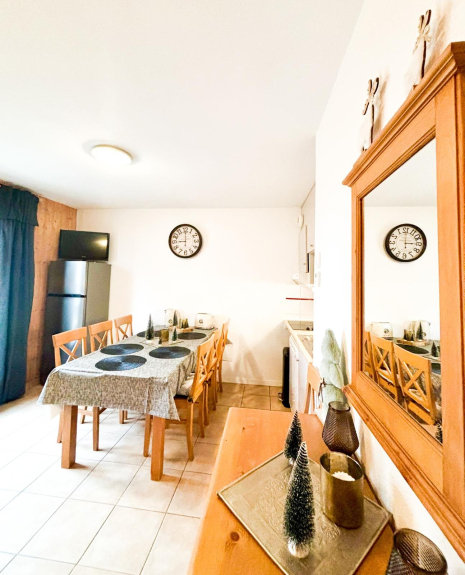 Lo chalet dispone di una cucina completamente attrezzata (Nespresso, piano cottura a induzione, grande frigorifero e congelatore, forno a microonde, lavastoviglie, tostapane, bollitore, apparecchi per raclette, fonduta e crêpe...).