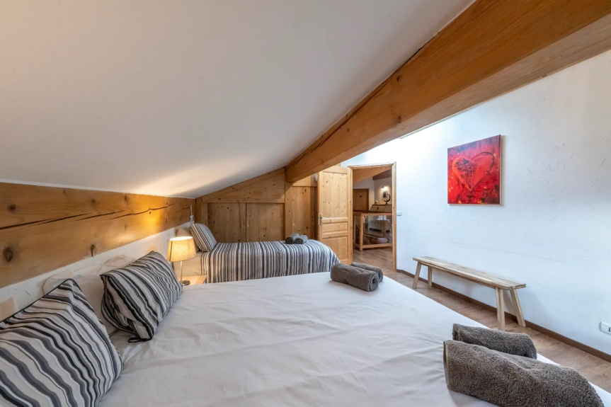 Un letto matrimoniale (160X200) e un letto singolo (80X200), oltre a un ripostiglio; accesso al balcone.