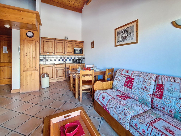 Questo residence, situato all'ingresso del resort, ha un'atmosfera tradizionale savoiarda. Venite a scoprire i suoi appartamenti funzionali, la zona relax con piscina, sauna, hammam, sala fitness, negozio di sci e servizio navetta gratuito per il centro del resort, a solo 1 km di distanza.