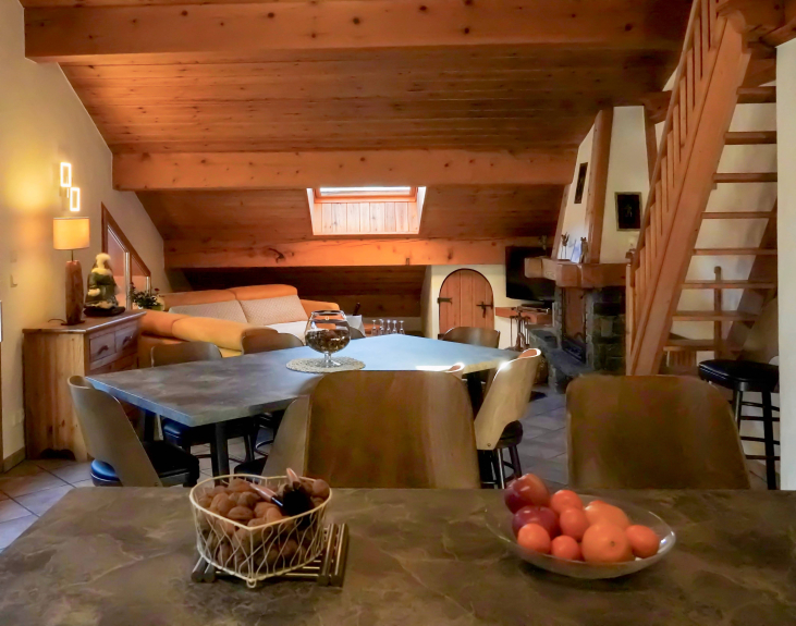 Situato sul lato sud del Paradiski di La Plagne, nel cuore della stazione di Champagny en Vanoise, questo magnifico alloggio di 85 m² situato al secondo piano di uno chalet tradizionale savoiardo vi sedurrà con la sua atmosfera calda e il suo arredamento pulito e naturale.
