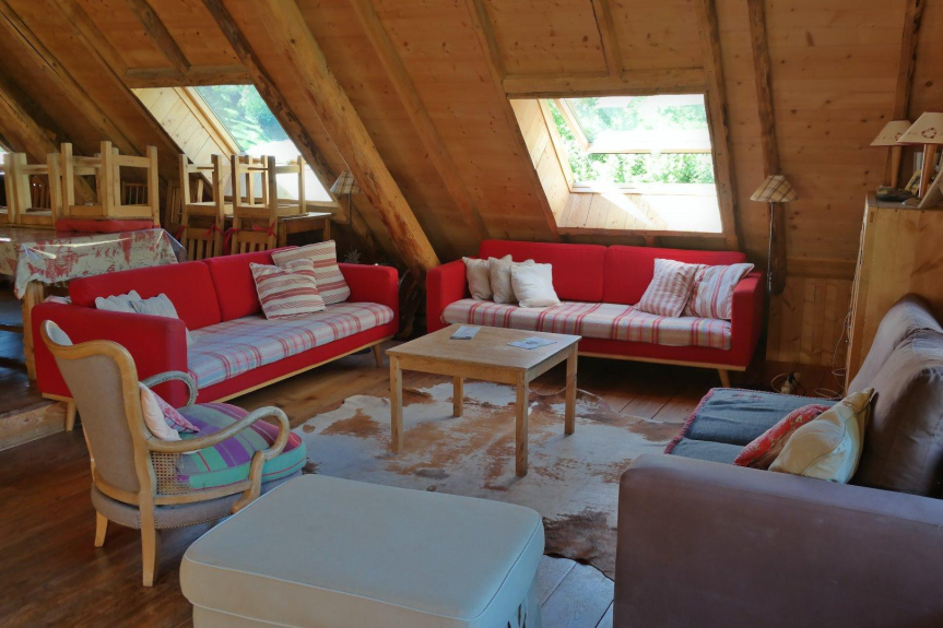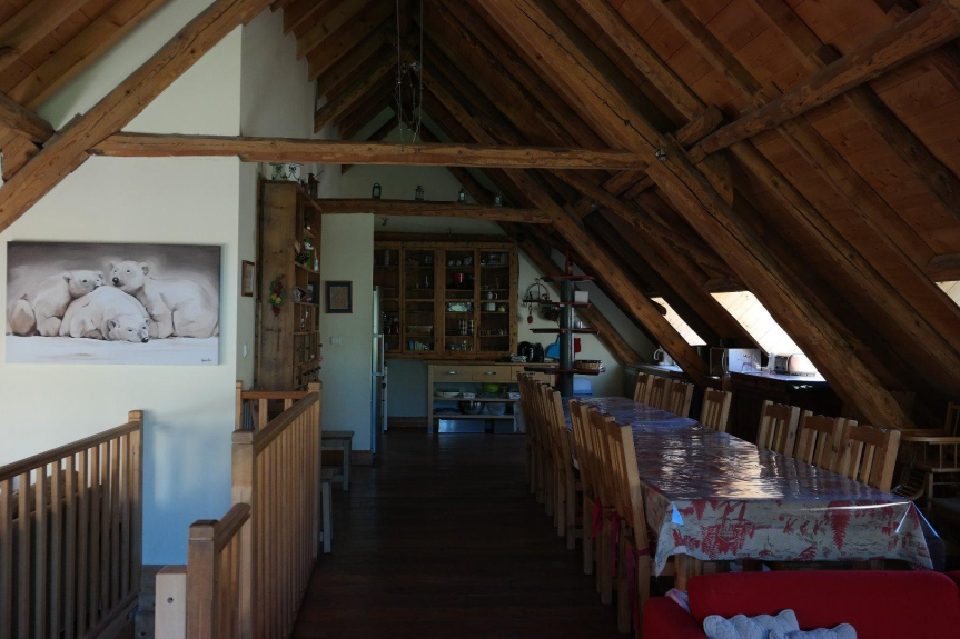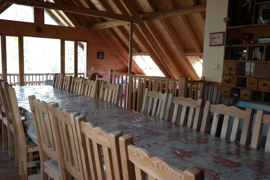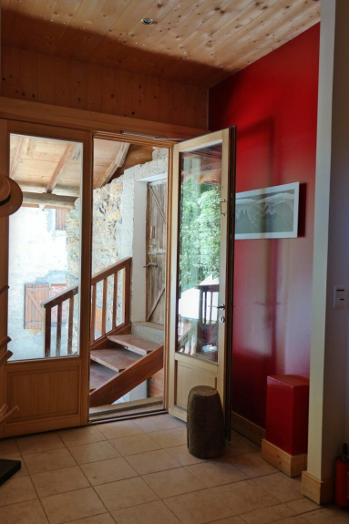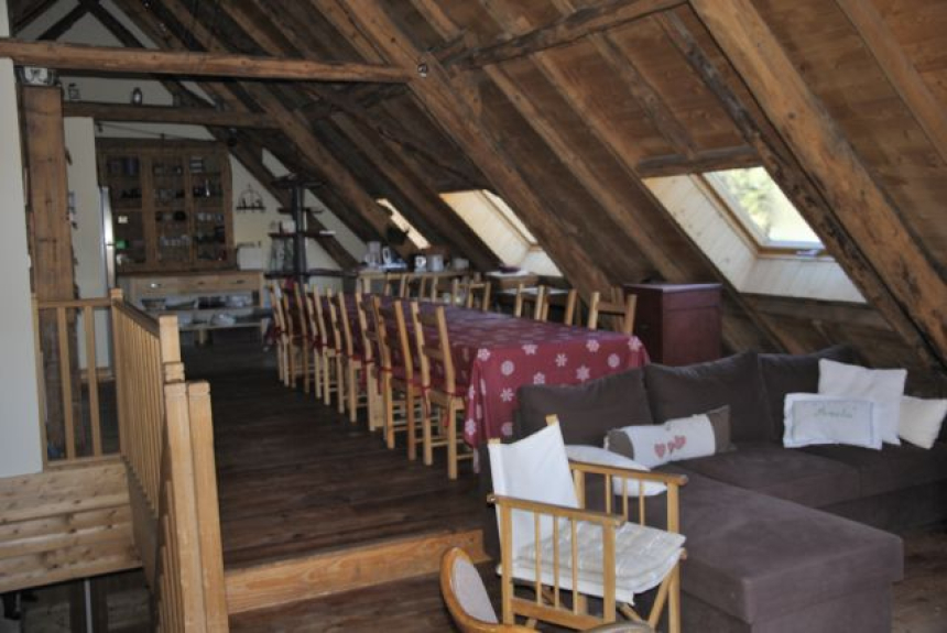 Chalet-casale Maurienne (riposo 2003-04), ideale per 18 a 27 persone, 1300m, 9 camere, 3 bagni, 4 docce, 5 wc. Soggiorno luminoso 100 m2. Balcone 10 m2. Appartamento al piano terra (accesso dall'esterno). Legno, completamente attrezzato. Riscaldamento geotermico.