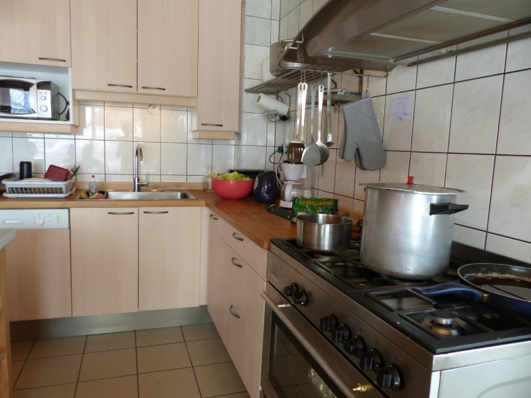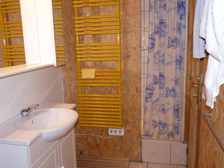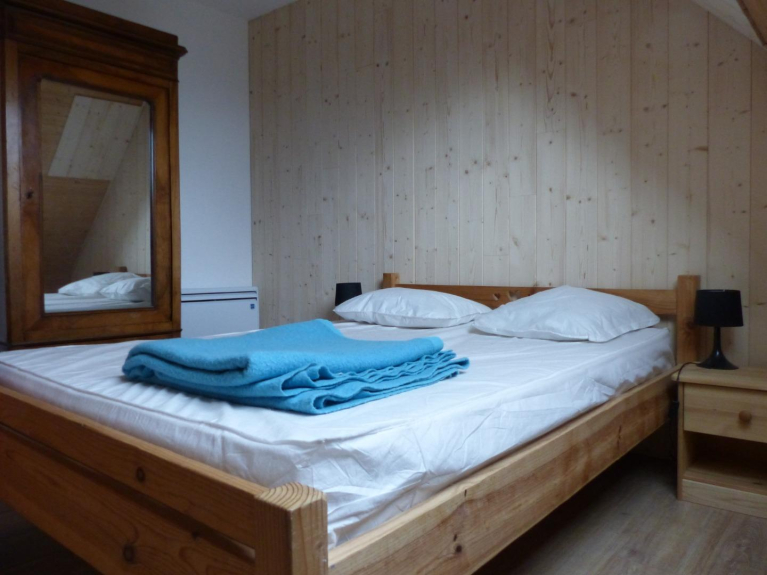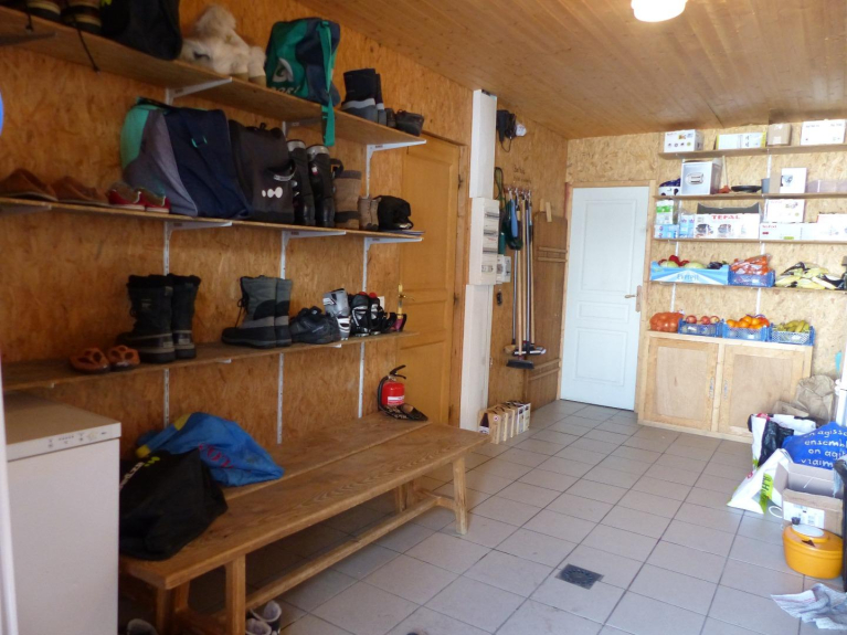 Al piano terra dello chalet, si può godere della grande cucina attrezzata per 15 persone con vere e proprie grandi pentole e padelle, il grande tavolo del soggiorno e il salone con i suoi comodi divani. Su questo livello c'è anche un dormitorio con 5 letti e un bagno con doccia e una camera doppia con un letto matrimoniale.