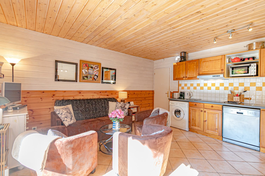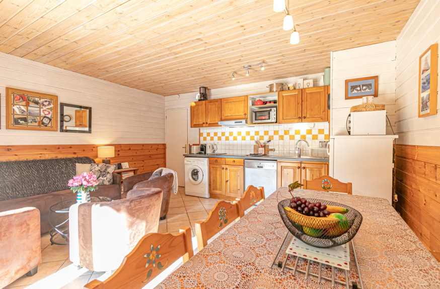 soggiorno con cucina, due camere da letto e un angolo di montagna, due bagni. Terrazza esposta a sud con asciuga scarponi nell'armadietto degli sci!