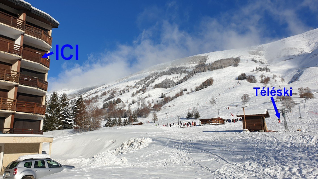 Composto da: Bagno con vasca, WC separato, camera da letto con vista sulle piste, sala principale con angolo cottura, zona pranzo, finestra sulle piste, divano, TV a colori. Balcone con tavolo e sdraio. Parcheggio privato nel residence. Camera da sci