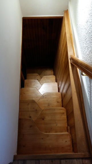 al piano terra cucina-soggiorno 25 m2, nel seminterrato con finestra, doccia + WC separato, lavatrice asciugatrice. Al 1° piano 2 camere da letto, ciascuna con 1 letto matrimoniale. Possibilità di due letti supplementari in BZ in cucina-soggiorno