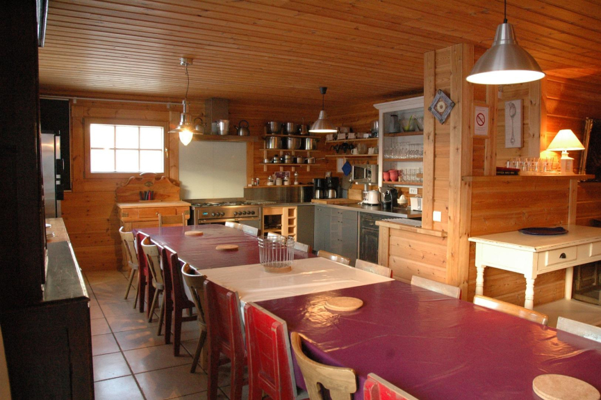 Grande chalet nu costruito in legno massiccio, situato nella frazione di "Plangagnant", ad un'altitudine di 1650 m, sulla strada di accesso alle stazioni di alta quota di La Plagne. Si affaccia sulla pista olimpica di bob e slittino.