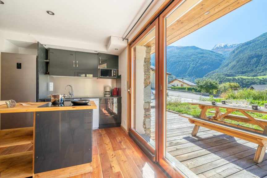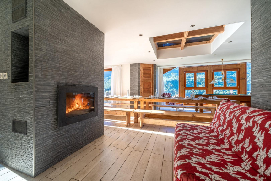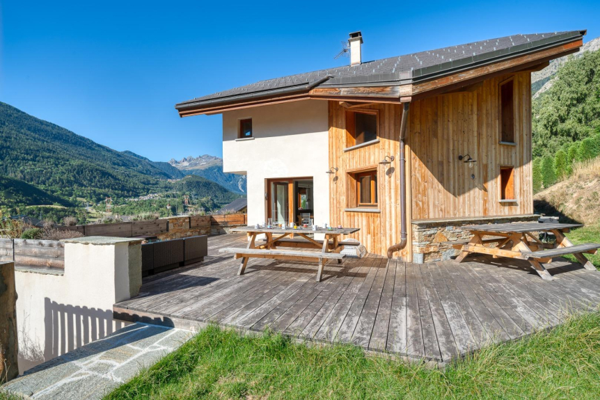 Situato in cima al villaggio con una splendida vista sui forti dell'Esseillon, le piste da sci di Norma e le montagne della Vanoise: una grande terrazza esposta a sud con una vista senza ostacoli permette di mangiare all'aperto al sole. Un grande soggiorno-sala da pranzo-cucina (70 m2 circa) con un camino, un tavolo da biliardo e finestre a bovindo che si aprono su una chiara vista delle montagne.