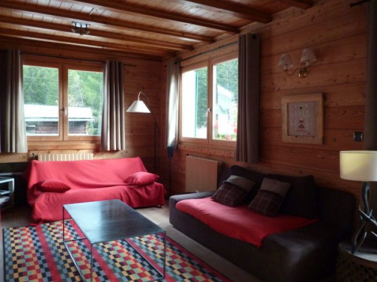 Chalet familiare confortevole, ambiente molto tranquillo, esposizione sud, vista sul Monte Bianco, terrazza con mobili da giardino, giardino di 1000m2, 10mn a piedi dal villaggio e dai negozi.