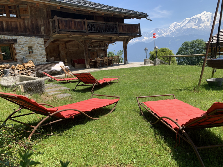 Questo grande chalet di 250 m², progettato per 4 a 10 persone, gode di un'eccezionale posizione soleggiata in un ambiente rurale con una vista panoramica sulla catena del Monte Bianco e le Aiguilles de Warens.